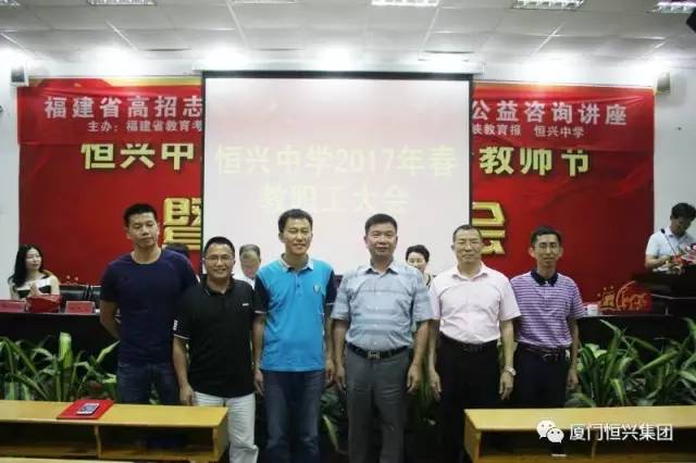 ? ? ? ? 6月30日晚7:10,恒興中學(xué)在多媒體教室隆重召開全體教職工大會(huì),宣布新一屆校董會(huì)及學(xué)校領(lǐng)導(dǎo)班子名單。