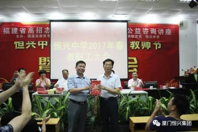 ? ? ? ? 同時(shí),本屆校董會(huì)還增聘王錦明為董事。學(xué)校原黨支部書記王錦明因年齡原因退休,不再擔(dān)任書記一職,經(jīng)校董會(huì)研究聘任其為董事。在教職工大會(huì)上,柯希平董事長為王錦明頒發(fā)“優(yōu)秀管理者”獎(jiǎng)牌及獎(jiǎng)勵(lì)金,肯定其在恒興中學(xué)14年來的努力及貢獻(xiàn)??孪F蕉麻L表示,期待王錦明以校董會(huì)董事的新角色,繼續(xù)一如繼往地支持學(xué)校的工作,為學(xué)校的發(fā)展建言獻(xiàn)策。