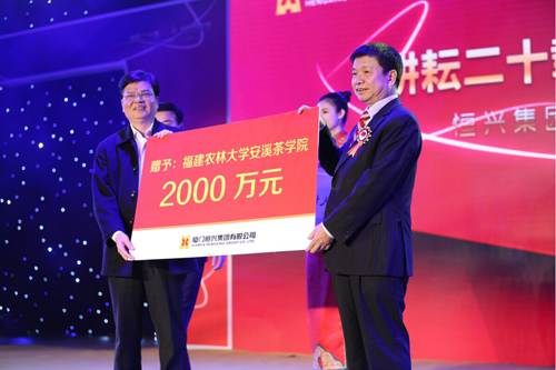 本場晚會以慈善捐助為主,恒興集團及柯希平董事長在晚會現(xiàn)場再次向福建農(nóng)林大學(xué)安溪茶學(xué)院捐款2000萬元,累積捐款額達(dá)到4000萬元;向龍巖上杭慈善會捐款1000萬元,累積捐款額達(dá)2000萬元,向新疆伊犁州伊寧縣慈善會現(xiàn)場捐款60萬,此前還向廈門大學(xué)捐款2000萬元,廈門大學(xué)有關(guān)領(lǐng)導(dǎo)送來了尊師中獎金質(zhì)獎?wù)潞途杩钭C書。