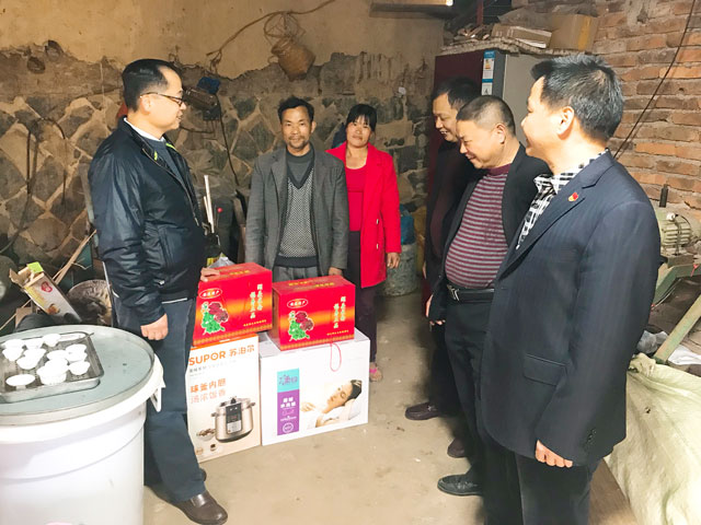 ? ? ? ? 活動中,慰問組深入到脫貧戶家中進行走訪慰問,詳細了解脫貧戶在這一年里的生產(chǎn)生活狀況,了解自開展扶貧工作以來所取得的變化,跟蹤前期幫扶項目的成效,鼓勵他們繼續(xù)以奮發(fā)向上的精神早日走上自主致富之路,并為脫貧戶送上春節(jié)慰問品和新春祝福,送去恒興集團領導的關懷和問候。
