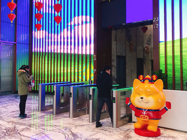 ? ? ? ? 財(cái)富中心的春節(jié)布置一經(jīng)亮相即成為租戶(hù)們紛紛合影的焦點(diǎn)。在財(cái)富中心正大門(mén),燈籠高掛,金桔相伴。三只可愛(ài)的吉祥狗“財(cái)富旺”、“金運(yùn)旺”和“納福旺”笑容可掬地站在大門(mén),迎接租戶(hù)的到來(lái),它們向過(guò)往的租戶(hù)傳遞著我們對(duì)租戶(hù)“財(cái)富滾滾,金運(yùn)連連,福氣滿(mǎn)滿(mǎn)”的美好祝愿。