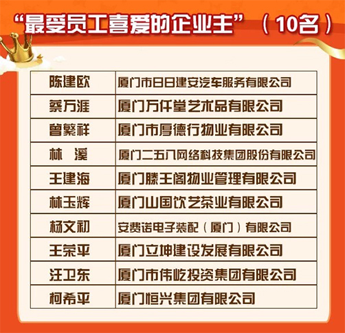 恒興集團(tuán)曾榮膺智聯(lián)招聘“2016年度廈門(mén)雇主十強(qiáng)”以及獵聘“2017福建創(chuàng)新非凡雇主獎(jiǎng)”。此次柯希平董事長(zhǎng)榮獲“員工喜愛(ài)的企業(yè)主”也是眾望所及,實(shí)至名歸。