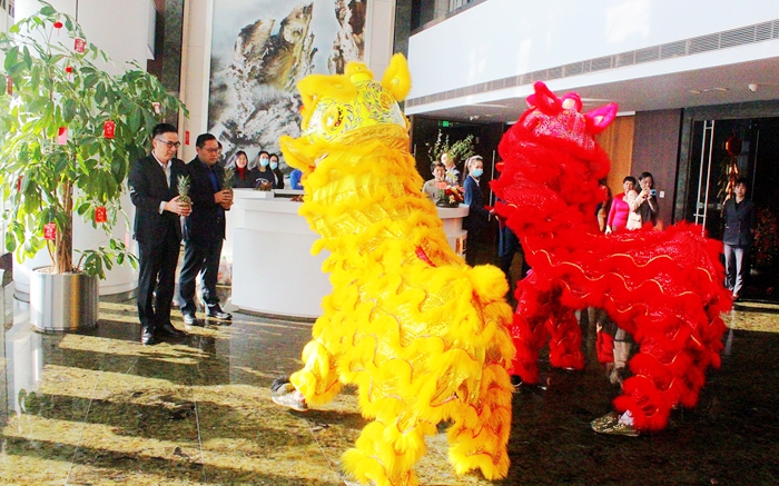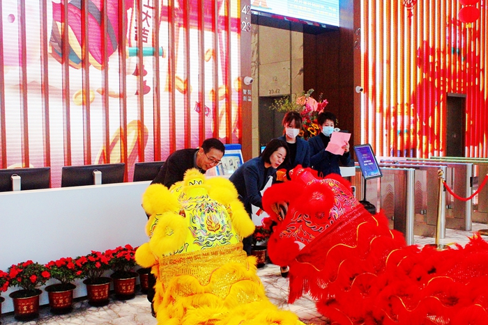 隨后,醒獅隊伍來到恒興集團42樓前臺進行精湛表演,登高采青送“旺來“,金獅從領導手中接過“利是”,收下開年之喜!