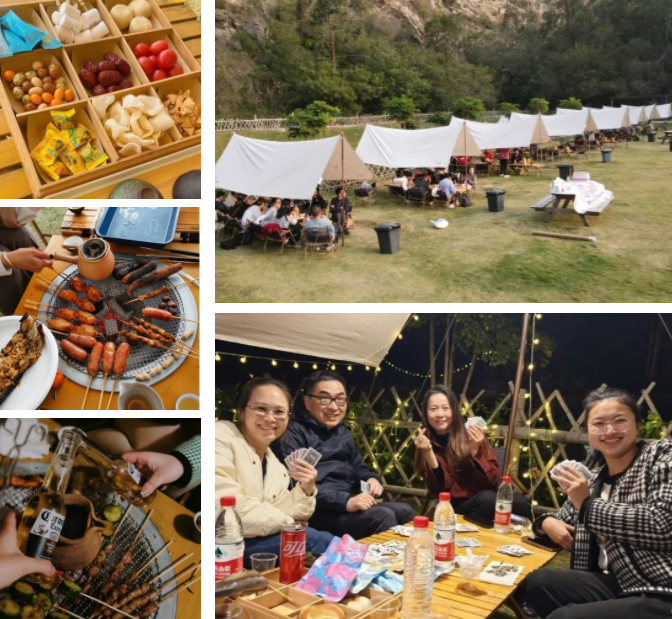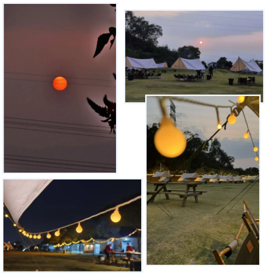 相聚的時(shí)刻,從來不缺少美食,17:30,燒烤晚餐開啟。令人驚喜的是,整片營(yíng)地向西,一眼望去,夕陽(yáng)正西下,我們一起遇見了這個(gè)春天震撼的落日景色。星星點(diǎn)點(diǎn),斑駁光影照在天幕下,美食美酒伴圍繞,聽著小伙伴們述說各自精彩有趣的經(jīng)歷過往。雖然時(shí)不時(shí),還要接個(gè)工作電話,但是當(dāng)下,我們?cè)谝黄?,就是最值得開心的。